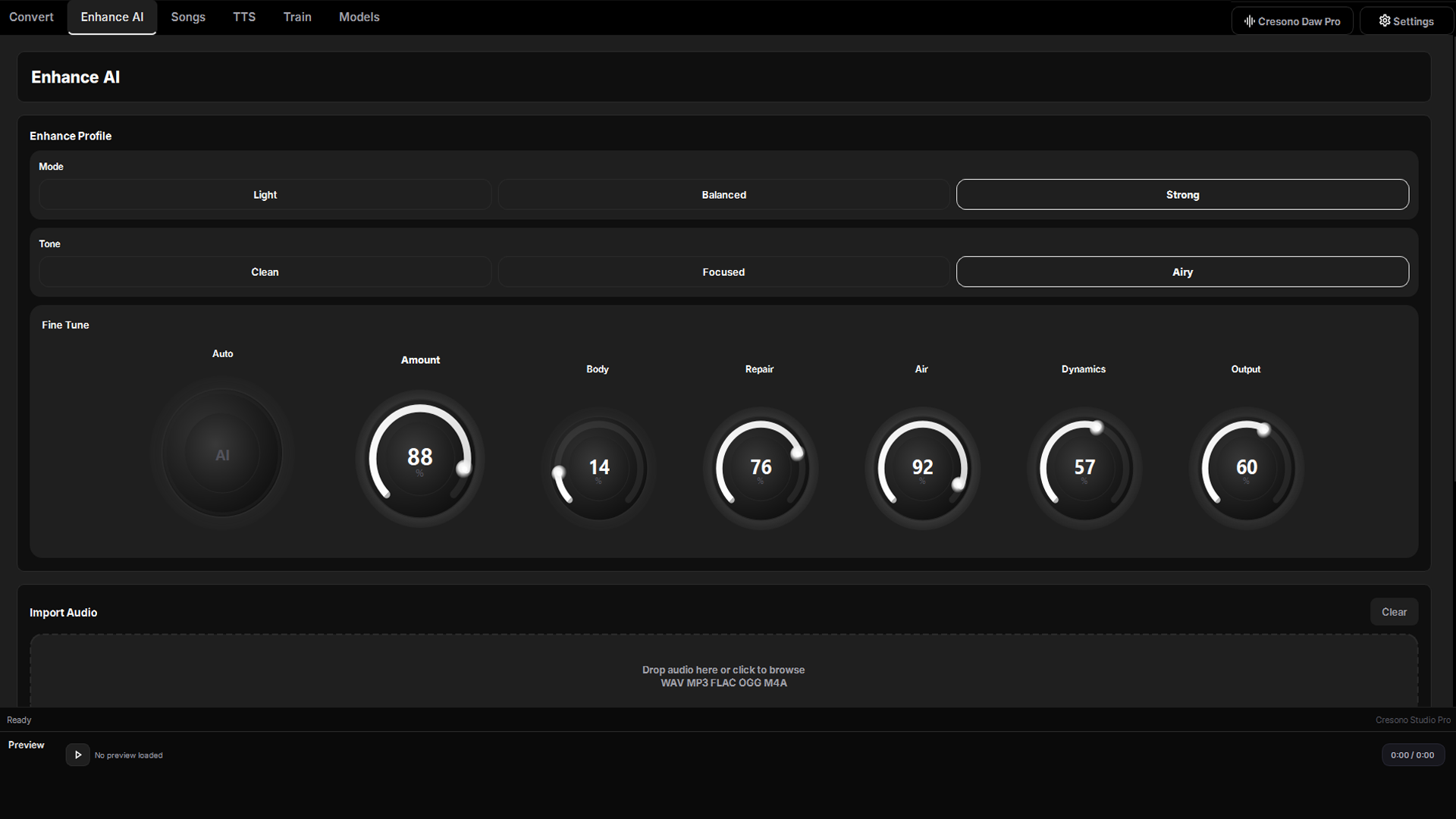 Cresono Studio Pro is built for modern Windows machines. A CUDA-capable GPU gives the smoothest path, but lighter workflows can still run without it.