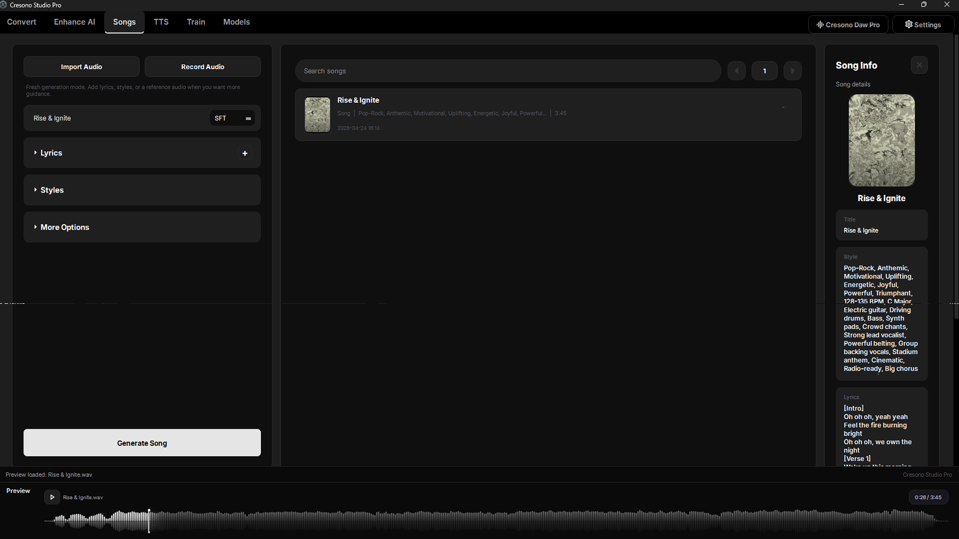 Cresono Studio Pro ties generation, conversion, enhancement, separation, and finishing into one product so the workflow feels continuous from the first idea to the final export.